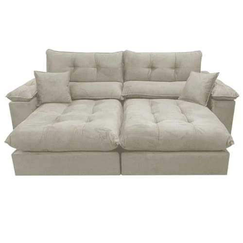 Sofá Harissa com Molas Ensacadas 4 Lugares Retrátil e Reclinável 250cm Tecido Veludo Ferreira Neto Cor Bege