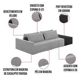O Sofá Ilha 2 Lugares Living Lary de 232 cm é uma peça de destaque para qualquer ambiente, com um design moderno este sofá apresenta uma estrutura modular permitindo reorganizá-la criando um layout personalizado. Revestido no luxuoso tecido Veludo em um tom envolvente de Cinza, proporcionando uma sensação de aconchego e sofisticação. Seu assento é fixo em espuma D-26 com multimolas de sustentação espiral e ensacadas, solda dupla, manta acrílica e percintas elásticas, suportando até 150 kg por assento. Já o encosto possui espuma D-23 sendo ele removível, com almofadas soltas preenchidas com 100% de fibra siliconada, proporcionando um apoio macio para as costas. Os pés são feitos em madeira certificando maior estabilidade ao móvel. Este sofá apresenta características de alta qualidade, incluindo uma estrutura de madeira tratada de eucalipto reflorestada, garantindo maior resistência e durabilidade ao produto, além de contribuir para a sustentabilidade ambiental. Com cinco assentos no total, um deles revestido em tecido Sintético Pu Preto com detalhes em gomos feito com a técnica de costura pespontos, este sofá oferece espaço suficiente para acomodar confortavelmente até seis pessoas, tornando-o ideal para receber amigos e familiares com estilo e conforto. Pode ser utilizado em escritórios, restaurantes e demais ambientes corporativos.O Sofá Lary é a escolha perfeita para quem busca uma peça de mobiliário que une funcionalidade, conforto e estilo em uma única solução para o seu ambiente. Aproveite!