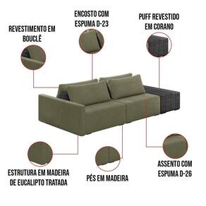O Sofá Ilha 2 Lugares Living Lary de 272 cm é uma peça de destaque para qualquer ambiente, com um design moderno este sofá apresenta uma estrutura modular permitindo reorganizá-la criando um layout personalizado. Revestido no luxuoso tecido Bouclê, proporcionando uma sensação de aconchego e sofisticação. Seu assento é fixo em espuma D-26 com multimolas de sustentação espiral e ensacadas, solda dupla, manta acrílica e percintas elásticas, suportando até 150 kg por assento. Já o encosto possui espuma D-23 sendo ele removível, com almofadas soltas preenchidas com 100% de fibra siliconada, proporcionando um apoio macio para as costas. Os pés são feitos em madeira certificando maior estabilidade ao móvel. Este sofá apresenta características de alta qualidade, incluindo uma estrutura de madeira tratada de eucalipto reflorestada, garantindo maior resistência e durabilidade ao produto, além de contribuir para a sustentabilidade ambiental. Com cinco assentos no total, um deles revestido em tecido Sintético Pu Preto com detalhes em gomos feito com a técnica de costura pespontos, este sofá oferece espaço suficiente para acomodar confortavelmente até seis pessoas, tornando-o ideal para receber amigos e familiares com estilo e conforto. Pode ser utilizado em escritórios, restaurantes e demais ambientes corporativos.O Sofá Lary é a escolha perfeita para quem busca uma peça de mobiliário que une funcionalidade, conforto e estilo em uma única solução para o seu ambiente. Aproveite!