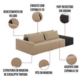 Sofá Ilha 2 Lugares Living 272cm Modulado Sala Lary Veludo/PU Pto K01 - D`Rossi - Bege