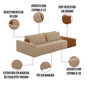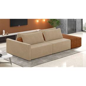 O Sofá Ilha 2 Lugares Living Lary de 292 cm é uma peça de destaque para qualquer ambiente, com um design moderno este sofá apresenta uma estrutura modular permitindo reorganizá-la criando um layout personalizado. Revestido no luxuoso tecido Veludo em um tom envolvente de Bege, proporcionando uma sensação de aconchego e sofisticação. Seu assento é fixo em espuma D-26 com multimolas de sustentação espiral e ensacadas, solda dupla, manta acrílica e percintas elásticas, suportando até 150 kg por assento. Já o encosto possui espuma D-23 sendo ele removível, com almofadas soltas preenchidas com 100% de fibra siliconada, proporcionando um apoio macio para as costas. Os pés são feitos em madeira certificando maior estabilidade ao móvel. Este sofá apresenta características de alta qualidade, incluindo uma estrutura de madeira tratada de eucalipto reflorestada, garantindo maior resistência e durabilidade ao produto, além de contribuir para a sustentabilidade ambiental. Com cinco assentos no total, um deles revestido em tecido Sintético Pu Nozes com detalhes em gomos feito com a técnica de costura pespontos, este sofá oferece espaço suficiente para acomodar confortavelmente até seis pessoas, tornando-o ideal para receber amigos e familiares com estilo e conforto. Pode ser utilizado em escritórios, restaurantes e demais ambientes corporativos.O Sofá Lary é a escolha perfeita para quem busca uma peça de mobiliário que une funcionalidade, conforto e estilo em uma única solução para o seu ambiente. Aproveite!