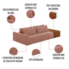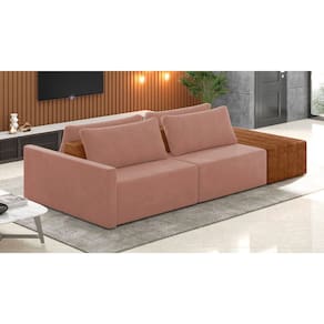 O Sofá Ilha 2 Lugares Living Lary de 292 cm é uma peça de destaque para qualquer ambiente, com um design moderno este sofá apresenta uma estrutura modular permitindo reorganizá-la criando um layout personalizado. Revestido no luxuoso tecido Veludo em um tom envolvente de Rosê, proporcionando uma sensação de aconchego e sofisticação. Seu assento é fixo em espuma D-26 com multimolas de sustentação espiral e ensacadas, solda dupla, manta acrílica e percintas elásticas, suportando até 150 kg por assento. Já o encosto possui espuma D-23 sendo ele removível, com almofadas soltas preenchidas com 100% de fibra siliconada, proporcionando um apoio macio para as costas. Os pés são feitos em madeira certificando maior estabilidade ao móvel. Este sofá apresenta características de alta qualidade, incluindo uma estrutura de madeira tratada de eucalipto reflorestada, garantindo maior resistência e durabilidade ao produto, além de contribuir para a sustentabilidade ambiental. Com cinco assentos no total, um deles revestido em tecido Sintético Pu Nozes com detalhes em gomos feito com a técnica de costura pespontos, este sofá oferece espaço suficiente para acomodar confortavelmente até seis pessoas, tornando-o ideal para receber amigos e familiares com estilo e conforto. Pode ser utilizado em escritórios, restaurantes e demais ambientes corporativos.O Sofá Lary é a escolha perfeita para quem busca uma peça de mobiliário que une funcionalidade, conforto e estilo em uma única solução para o seu ambiente. Aproveite!