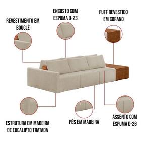 O Sofá Ilha 3 Lugares Living Lary de 372 cm é uma peça de destaque para qualquer ambiente, com um design moderno este sofá apresenta uma estrutura modular permitindo reorganizá-la criando um layout personalizado. Revestido no luxuoso tecido Bouclê em um tom envolvente de Bege, proporcionando uma sensação de aconchego e sofisticação. Seu assento é fixo em espuma D-26 com multimolas de sustentação espiral e ensacadas, solda dupla, manta acrílica e percintas elásticas, suportando até 150 kg por assento. Já o encosto possui espuma D-23 sendo ele removível, com almofadas soltas preenchidas com 100% de fibra siliconada, proporcionando um apoio macio para as costas. Os pés são feitos em madeira certificando maior estabilidade ao móvel. Este sofá apresenta características de alta qualidade, incluindo uma estrutura de madeira tratada de eucalipto reflorestada, garantindo maior resistência e durabilidade ao produto, além de contribuir para a sustentabilidade ambiental. Com sete assentos no total, um deles revestido em tecido Sintético Pu Nozes com detalhes em gomos feito com a técnica de costura pespontos, este sofá oferece espaço suficiente para acomodar confortavelmente até oito pessoas, tornando-o ideal para receber amigos e familiares com estilo e conforto. Pode ser utilizado em escritórios, restaurantes e demais ambientes corporativos.O Sofá Lary é a escolha perfeita para quem busca uma peça de mobiliário que une funcionalidade, conforto e estilo em uma única solução para o seu ambiente. Aproveite! Dimensões do Produto: Altura Total: 82 cm Largura Total: 372 cm Profundidade Total: 160 cm Peso: 170 kg Largura do Braço: 12 cm Largura do Assento: 100 cm Profundidade do Assento: Variável. Altera de acordo com a posição do encosto Outras Medidas: 1x Módulo Lateral com Braço: 112 x 82 x 160 cm 2x Módulo Central: 100 x 82 x 160 cm Largura do Puff: 60 x 45 x 160 cm Altura do chão ao Assento: 45 cm Altura do Encosto: 37 cm Especificações do Produto: Estrutura: Madeira de Reflorestamento Tratada (Eucalipto) Espuma do Encosto: D-23, ajustável Espuma do Assento: D-26 Molas Ensacadas e Espirais com Percintas/Manta Acrílica Revestimento: Bouclê Possui Pés: Sim Tipo de Pés: Madeira Detalhes/Aplicações: Acompanha Almofadas Soltas 100% Fibras Siliconadas - Manta Acrílica Peso Suportado: Até 150 Kg por assento Quantidade de Assentos: 7 Assentos Quantidade de Lugares: Até 8 Lugares Tipo de Encosto: Móvel Tipo de Assento: Fixo É retrátil: Não É reclinável: Não Complexidade da Montagem: Baixo Diferenciais: Sofá modular, estilo ilha, pode ser aproveitado assentos em ambos os lados. Acompanha almofadas. Ideal para sala de estar, living e ambientes integrados Montagem: O produto é enviado montado, sendo necessário apenas a junção dos módulos. Garantia: 90 dias contra defeito de fabricação Instruções de Limpeza: Utilizar um pano limpo e levemente úmido Você irá Receber: 01 Sofá Entregue em: 04 Volumes