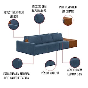 O Sofá Ilha 3 Lugares Living Lary de 372 cm é uma peça de destaque para qualquer ambiente, com um design moderno este sofá apresenta uma estrutura modular permitindo reorganizá-la criando um layout personalizado. Revestido no luxuoso tecido Veludo em um tom envolvente de Azul Marinho, proporcionando uma sensação de aconchego e sofisticação. Seu assento é fixo em espuma D-26 com multimolas de sustentação espiral e ensacadas, solda dupla, manta acrílica e percintas elásticas, suportando até 150 kg por assento. Já o encosto possui espuma D-23 sendo ele removível, com almofadas soltas preenchidas com 100% de fibra siliconada, proporcionando um apoio macio para as costas. Os pés são feitos em madeira certificando maior estabilidade ao móvel. Este sofá apresenta características de alta qualidade, incluindo uma estrutura de madeira tratada de eucalipto reflorestada, garantindo maior resistência e durabilidade ao produto, além de contribuir para a sustentabilidade ambiental. Com sete assentos no total, um deles revestido em tecido Sintético Pu Nozes com detalhes em gomos feito com a técnica de costura pespontos, este sofá oferece espaço suficiente para acomodar confortavelmente até oito pessoas, tornando-o ideal para receber amigos e familiares com estilo e conforto. Pode ser utilizado em escritórios, restaurantes e demais ambientes corporativos.O Sofá Lary é a escolha perfeita para quem busca uma peça de mobiliário que une funcionalidade, conforto e estilo em uma única solução para o seu ambiente. Aproveite!