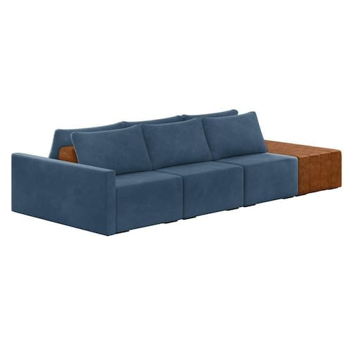 O Sofá Ilha 3 Lugares Living Lary de 402 cm é uma peça de destaque para qualquer ambiente, com um design moderno este sofá apresenta uma estrutura modular permitindo reorganizá-la criando um layout personalizado. Revestido no luxuoso tecido Veludo em um tom envolvente de Azul Marinho, proporcionando uma sensação de aconchego e sofisticação. Seu assento é fixo em espuma D-26 com multimolas de sustentação espiral e ensacadas, solda dupla, manta acrílica e percintas elásticas, suportando até 150 kg por assento. Já o encosto possui espuma D-23 sendo ele removível, com almofadas soltas preenchidas com 100% de fibra siliconada, proporcionando um apoio macio para as costas. Os pés são feitos em madeira certificando maior estabilidade ao móvel. Este sofá apresenta características de alta qualidade, incluindo uma estrutura de madeira tratada de eucalipto reflorestada, garantindo maior resistência e durabilidade ao produto, além de contribuir para a sustentabilidade ambiental. Com sete assentos no total, um deles revestido em tecido Sintético Pu Nozes com detalhes em gomos feito com a técnica de costura pespontos, este sofá oferece espaço suficiente para acomodar confortavelmente até oito pessoas, tornando-o ideal para receber amigos e familiares com estilo e conforto. Pode ser utilizado em escritórios, restaurantes e demais ambientes corporativos.O Sofá Lary é a escolha perfeita para quem busca uma peça de mobiliário que une funcionalidade, conforto e estilo em uma única solução para o seu ambiente. Aproveite!