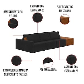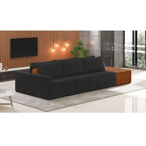 Sofá Ilha 3 Lugares Living 402cm Modulado Lary Veludo K01 Cor Preto