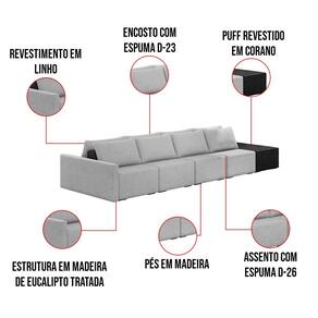 O Sofá Ilha 4 Lugares Living Lary de 392 cm é uma peça de destaque para qualquer ambiente, com um design moderno este sofá apresenta uma estrutura modular permitindo reorganizá-la criando um layout personalizado. Revestido no luxuoso tecido Linho, proporcionando uma sensação de aconchego e sofisticação. Seu assento é fixo em espuma D-26 com multimolas de sustentação espiral e ensacadas, solda dupla, manta acrílica e percintas elásticas, suportando até 150 kg por assento. Já o encosto possui espuma D-23 sendo ele removível, com almofadas soltas preenchidas com 100% de fibra siliconada, proporcionando um apoio macio para as costas. Os pés são feitos em madeira certificando maior estabilidade ao móvel. Este sofá apresenta características de alta qualidade, incluindo uma estrutura de madeira tratada de eucalipto reflorestada, garantindo maior resistência e durabilidade ao produto, além de contribuir para a sustentabilidade ambiental. Com nove assentos no total, um deles revestido em tecido Sintético Pu Preto com detalhes em gomos feito com a técnica de costura pespontos, este sofá oferece espaço suficiente para acomodar confortavelmente até dez pessoas, tornando-o ideal para receber amigos e familiares com estilo e conforto. Pode ser utilizado em escritórios, restaurantes e demais ambientes corporativos.O Sofá Lary é a escolha perfeita para quem busca uma peça de mobiliário que une funcionalidade, conforto e estilo em uma única solução para o seu ambiente. Aproveite!