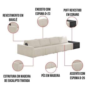 Sofá Ilha 4 Lugares Living 512cm Modulado Sala Lary Bouclê/pu Pto K01 - D'rossi Cor Bege