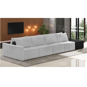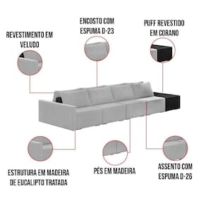 O Sofá Ilha 4 Lugares Living Lary de 512 cm é uma peça de destaque para qualquer ambiente, com um design moderno este sofá apresenta uma estrutura modular permitindo reorganizá-la criando um layout personalizado. Revestido no luxuoso tecido Veludo em um tom envolvente de Cinza, proporcionando uma sensação de aconchego e sofisticação. Seu assento é fixo em espuma D-26 com multimolas de sustentação espiral e ensacadas, solda dupla, manta acrílica e percintas elásticas, suportando até 150 kg por assento. Já o encosto possui espuma D-23 sendo ele removível, com almofadas soltas preenchidas com 100% de fibra siliconada, proporcionando um apoio macio para as costas. Os pés são feitos em madeira certificando maior estabilidade ao móvel. Este sofá apresenta características de alta qualidade, incluindo uma estrutura de madeira tratada de eucalipto reflorestada, garantindo maior resistência e durabilidade ao produto, além de contribuir para a sustentabilidade ambiental. Com nove assentos no total, um deles revestido em tecido Sintético Pu Preto com detalhes em gomos feito com a técnica de costura pespontos, este sofá oferece espaço suficiente para acomodar confortavelmente até dez pessoas, tornando-o ideal para receber amigos e familiares com estilo e conforto. Pode ser utilizado em escritórios, restaurantes e demais ambientes corporativos.O Sofá Lary é a escolha perfeita para quem busca uma peça de mobiliário que une funcionalidade, conforto e estilo em uma única solução para o seu ambiente. Aproveite!