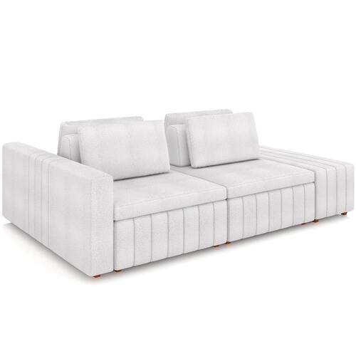 Conhecido pela imponência e versatilidade, o Sofá Ilha com Puff para Sala Living 245cm Amber, da Lyam Decor, é perfeito para quem procura um estofado com a proposta de integrar ambientes com fluidez, além de agregar beleza e conforto. Em outras palavras, esse sofá modulado vai permitir a setorização da área social, sem a necessidade de paredes. Assim, você poderá aproveitar do conceito aberto entre living e sala de ou, ainda, sala de estar e cozinha para desfrutar de momentos inesquecíveis com a família e amigos; afinal, lugares para recebe-los com aconchego não vão faltar. Além disso, os encostos e almofadas são soltos, a fim de oferecer mais dinamicidade de uso. Aproveite essa dualidade de estilo e modernidade e transforme o seu ambiente de um jeito harmonioso e impactante esse Sofá Ilha com Puff Amber.