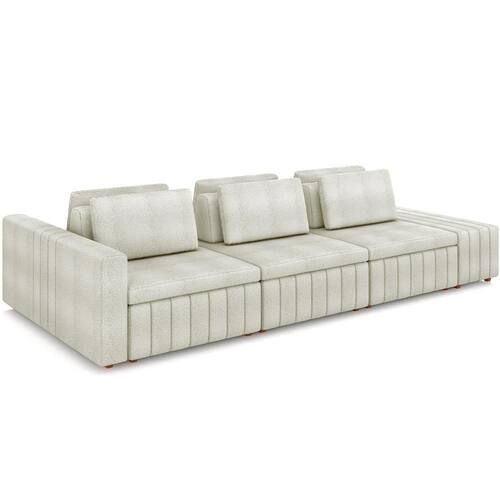 Conhecido pela imponência e versatilidade, o Sofá Ilha com Puff para Sala Living 335cm Amber, da Lyam Decor, é perfeito para quem procura um estofado com a proposta de integrar ambientes com fluidez, além de agregar beleza e conforto. Em outras palavras, esse sofá modulado vai permitir a setorização da área social, sem a necessidade de paredes. Assim, você poderá aproveitar do conceito aberto entre living e sala de ou, ainda, sala de estar e cozinha para desfrutar de momentos inesquecíveis com a família e amigos; afinal, lugares para recebe-los com aconchego não vão faltar. Além disso, os encostos e almofadas são soltos, a fim de oferecer mais dinamicidade de uso. Aproveite essa dualidade de estilo e modernidade e transforme o seu ambiente de um jeito harmonioso e impactante esse Sofá Ilha com Puff Amber.