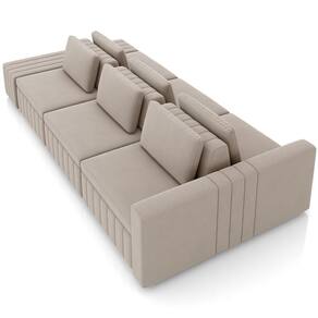 Cor: Bege | Altura: 84 cm | Color: Bege | ColorFamily: Bege | ColorSimple: Bege | ColorSupplier: Bege | Estilo: Moderno | Fabricante: Lyam Decor | Largura: 365 cm | Material: Madeira de Eucalipto | MaterialFamily: Madeira de Eucalipto | OriginCountry: | OriginState: PR | ProductContents: 01 Sofá Ilha Modulado, Almofadas | Profundidade: 160 cm | SupplierSimpleName: Sofá Ilha com Puff para Sala Living 365cm Amber M03 Veludo Bege - Lyam Decor | ProductLength: 160 cm