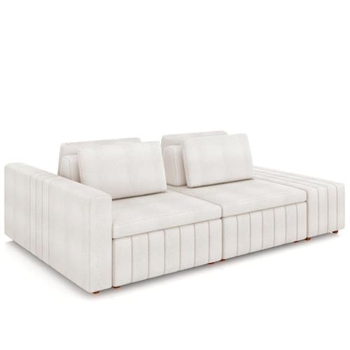 Esse estofado foi projetado para oferecer o máximo de conforto e estilo para o seu espaço, isso porque é um sofá modulado, com encosto removível e almofadas soltas, assim você pode personalizar o sofá de acordo com as suas necessidades e preferências, seja para uma tarde relaxante assistindo a um filme, seja para receber amigos e familiares em um ambiente aconchegante ou até mesmo como sofá cama, o Siesta é a escolha perfeita.