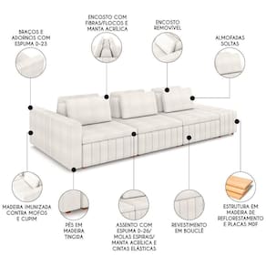 Procurando um sofá que seja perfeito para a sua sala de estar, living ou ambientes integrados? Conheça o Sofá Ilha com Puff Para Sala Living 365cm Siesta M22 Boucle Bege Claro, da Mpozenato, um móvel que combina design moderno e funcionalidade em uma só peça.
