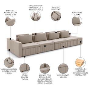 Quantidade de Assento: 4 Assentos no Sofá, 1 Assento no Puff.
