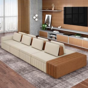 Quantidade de Assento: 4 Assentos no Sofá, 1 Assento no Puff.