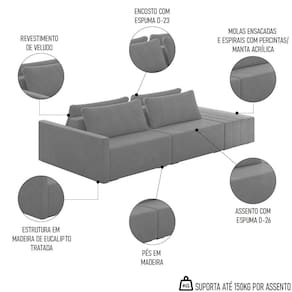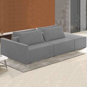 Sofá Ilha Modular com Puff para Sala Living 252cm Georgia K04 Veludo Cinza - Mpozenato