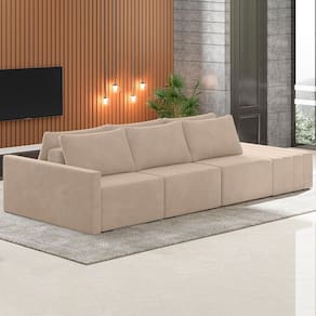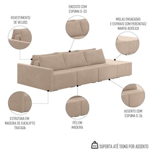 Sofá Ilha Modular com Puff para Sala Living 312cm Georgia K04 Veludo Bege - Mpozenato