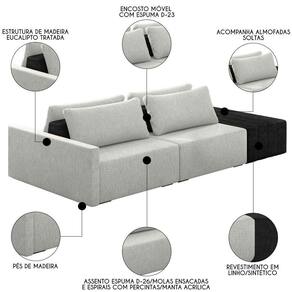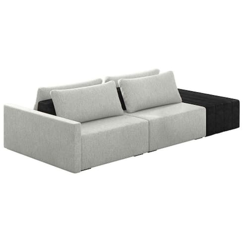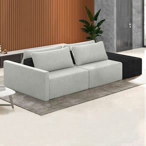 Eleve seu espaço de convivência a novos patamares de luxo com o Sofá Ilha Modular Living com Puff 252cm Georgia K04 Linho Cinza/Preto, da Mpozenato!