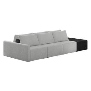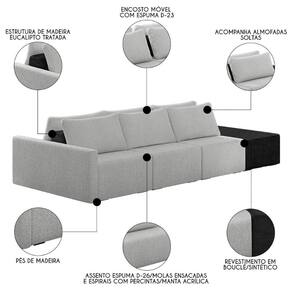 Eleve seu espaço de convivência a patamares de luxo com o Sofá Ilha Modular Living com Puff 342cm Georgia Z08 Boucle Cinza/Preto, da Mpozenato!