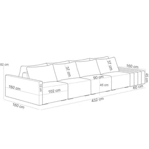 1x Módulo Lateral com Braço: 102 x 82 x 160 cm.