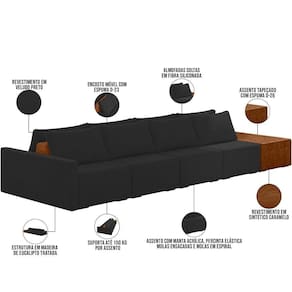 Unidades por kit: 1 | Tipo de produto: Sofá | Peso máximo suportado: 150 Kg | Material de enchimento do encosto: Encosto solto com espuma D-23 | Orientação do Sofá: na | Cor: Preto | Mecanismo de abertura do produto: na | Estilo: Moderno | Largura: 432cm | Requer montagem: Não | Material do estofamento: Veludo | Cor dos pés: NA | Peso: 201 kg | Fabricante: Lyam Decor | Desenho do tecido: Liso | Linha: Sala de Estar | Profundidade: 160cm | Densidade da espuma do assento: Assento fixo com espuma D-26 | Altura: 82cm | Formato do sofá: Ilha