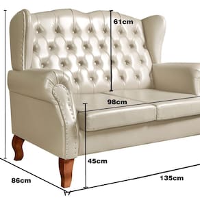 Assento: Almofada fixa composta por espuma D26 Plus de 07cm com manta siliconada de 200mm sob uma trama de percinta elástica Italiana. Produto Montado: Sim Acompanha Almofadas extras: Não Almofada do assento: Não Possui Altura do assento até o chão: 45.0000 Altura do Encosto: 102 cm Ambiente Principal: Sala de Estar codigo_ean: 7909903728192 Complexidade da Montagem: Baixa: pode ser montado por uma pessoa sozinha Cor: Bege Cor do Produto: Bege Firmeza do Assento: Médio Informações Complementares: 120Kg por acento Itens Inclusos: 1 Sofá Imperador 2 Lugares + Conjunto de Pés Linha ou Coleção: Imperador Necessita Montagem: Sim Origem do Produto: Nacional Peso: 55 kg Pet Friendly: Não Possui Percintas Elásticas: Sim Possui Pés: 04 Possui Rodízio: Não Recomendações de Uso, Manutenção e Limpeza: Limpeza e cuidados: pode ser utilizado aspirador de pó, escova com cerdas macias ou limpeza a seco. Não utilizar produtos químicos, abrasivos ou limpeza a vapor. Evitar exposição prolongada ao sol. Sistema de Montagem: Enroscar os Pés Suporta Até (kg): 120 kg Tecido Predominante: Couro Sintético Tipo de Encosto: Fixo Tipo de Mola: Não Possui