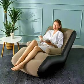 Sofá Inflável Bege Preguiçoso Dobrável e Portátil com Bomba