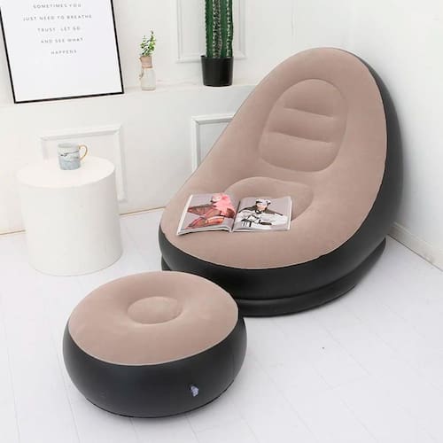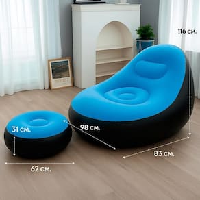 Sofá Inflável Pufe para Dormir em Locais Externos Relaxe com estilo e conforto com a Poltrona Inflável Ultra Lounge com Pufe. Ideal para diversos ambientes, como sala, quarto, camping ou praia, esta poltrona combina sofisticação e praticidade. Fabricada em PVC de alta qualidade e fibra revestida de 0,52mm, oferece resistência, durabilidade e capacidade de até 100 kg. Com um design moderno na cor marrom, harmoniza facilmente com qualquer decoração. Compacta e fácil de transportar, é a escolha perfeita para momentos de leitura, descanso ou lazer. O conjunto inclui um pufe que complementa a experiência, garantindo máximo conforto.