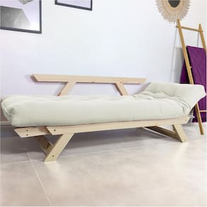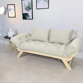 Material: Estrutura em madeira maciça.Futon: Produzido com espuma ortopédica, algodão puro e fibra de silicone, revestido em tecido de alta qualidade.Qualidade artesanal: Cada futon é produzido de forma artesanal, garantindo um produto único com excelente qualidade, conforto e design.Informações Adicionais:
