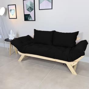 Material e estrutura: Futon de alta qualidade. Produzido com espuma ortopédica, algodão puro e fibra de silicone. Tecido em Acquablock Impermeável. A estrutura é produzida em madeira de pinus sem pintura.
