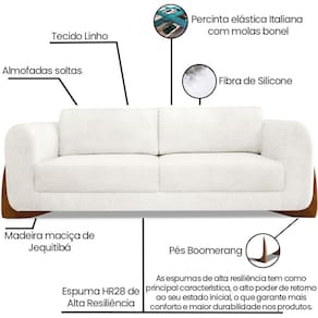Modelo: Sofa Jolie 3 Lugares 200cm Pes Boomerang Linho Boucle