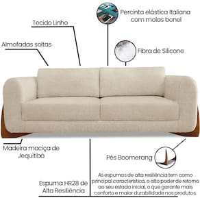 Modelo: Sofa Jolie 3 Lugares 200cm Pes Boomerang Linho Boucle