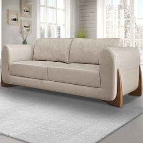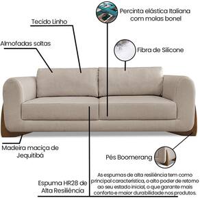 Sofa Jolie 3 Lugares 220cm Pes Boomerang Linho 214 Areia Ezz