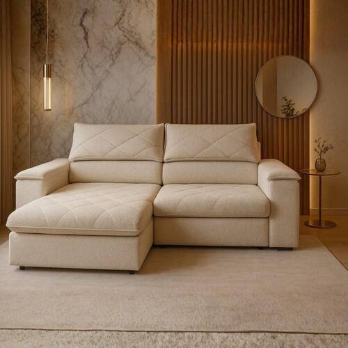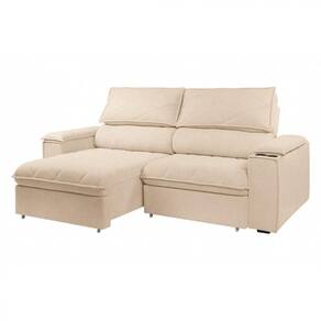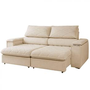 Encosto: Reclinavel com catraca metalica de 5 posicoes, para ajuste personalizado. Almofadas com enchimento em fibra siliconada, garantindo maciez e um visual sempre impecavel. Bracos: Confeccionados com espuma D14, oferecem conforto e leveza ao design do movel. Pes: Em madeira, que conferem um acabamento elegante e reforcam a firmeza do sofa. Acabamento: Revestimento interno e externo em TNT preto, que protege a estrutura e oferece um toque final discreto e sofisticado. Garantia: 3 meses contra defeitos de fabricacao.