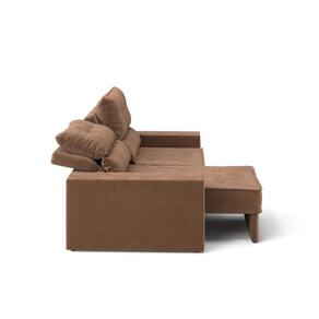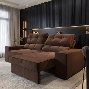 Seu design contemporâneo é realçado pelo revestimento em tecido suede, que traz um toque aveludado e sofisticado ao ambiente. Os assentos retráteis e encostos reclináveis proporcionam conforto ajustável, perfeito para qualquer momento do dia.