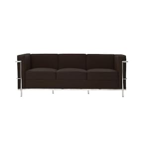 AS IMAGENS SÃO MERAMENTE ILUSTRATIVAS E PODEM SOFRER VARIAÇÕES DE COR E PEQUENOS DETALHES DE ACORDO COM O SEU MONITOR, ILUMINAÇÃO DO AMBIENTE E ATÉ MESMO A SUA PERCEPÇÃO VISUAL.Sofa Le Corbusier 3 Lugares Cromado em Couro Natural Marrom