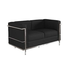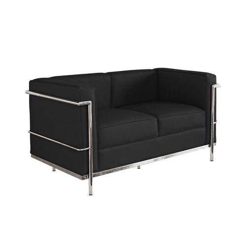 AS IMAGENS SÃO MERAMENTE ILUSTRATIVAS E PODEM SOFRER VARIAÇÕES DE COR E PEQUENOS DETALHES DE ACORDO COM O SEU MONITOR, ILUMINAÇÃO DO AMBIENTE E ATÉ MESMO A SUA PERCEPÇÃO VISUAL.Sofa Le Corbusier de 2 Lugares Inox e Couro Natural Preto