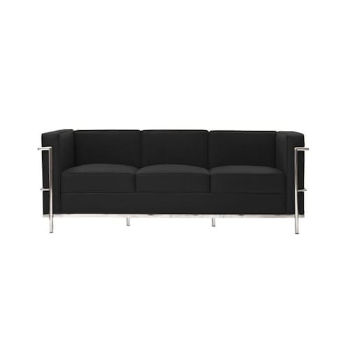 AS IMAGENS SÃO MERAMENTE ILUSTRATIVAS E PODEM SOFRER VARIAÇÕES DE COR E PEQUENOS DETALHES DE ACORDO COM O SEU MONITOR, ILUMINAÇÃO DO AMBIENTE E ATÉ MESMO A SUA PERCEPÇÃO VISUAL.Sofa Le Corbusier de 3 Lugares Cromado em SintÃtico Preto