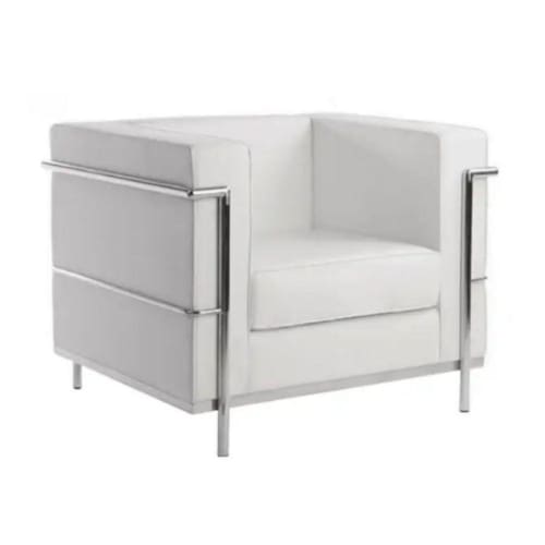Sofá Le Corbusier Masculino LC 1 Lugar Inox Revestido em Tecido Sintético Branco