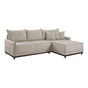 Sofá Linho 3 Lugares 264cm com Chaise Lado Direito e Kit Usb Barra Creme - Bege