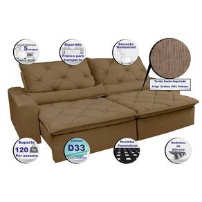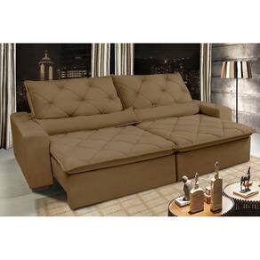 Sofá Lisboa 2,52m Retrátil, Reclinável com Molas no Assento Tecido Suede Grafiato - Cama InBox - Marrom