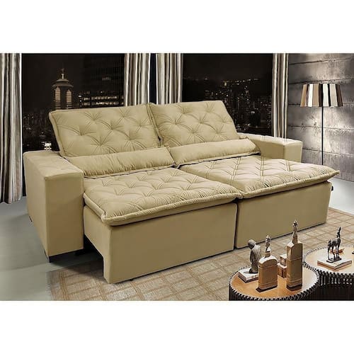 Sofá Lisboa 2,52m Retrátil, Reclinável Com Molas No Assento Tecido Suede Velusoft Bege - Cama Inbox