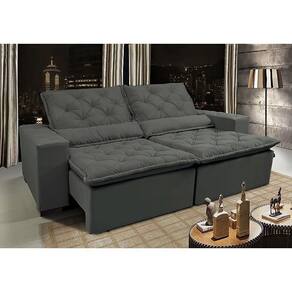 Sofá Lisboa 2,72m Retrátil, Reclinável Com Molas No Assento Tecido Suede Velusoft Grafite