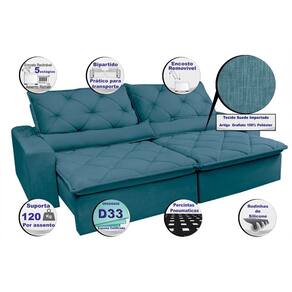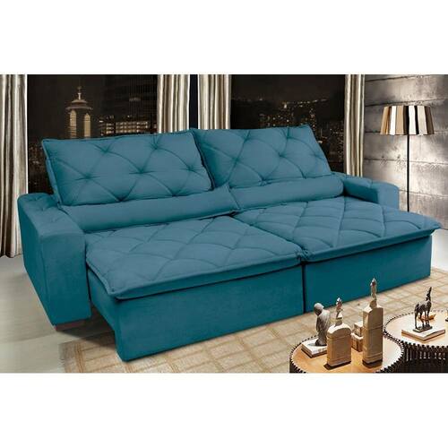 Sofá Lisboa 2,92m Retrátil, Reclinável com Molas no Assento Tecido Suede - Cama InBox - Azul Marinho