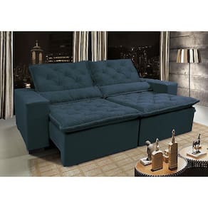 Sofá Lisboa 2,92m Retrátil, Reclinável com Molas no Assento Tecido Suede Velusoft Azul - Cama InBox - Azul Marinho