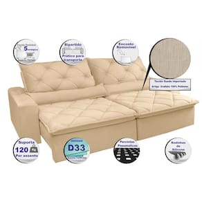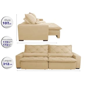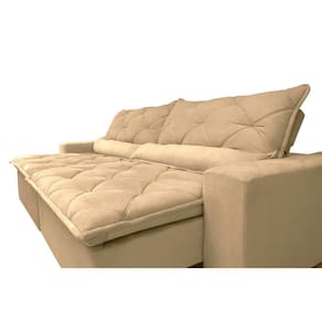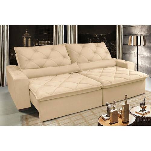 Sofá Lisboa 3,12m Retrátil, Reclinável com Molas no Assento Tecido Suede - Cama InBox - Bege