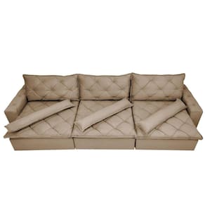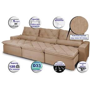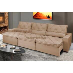 Sofá Lisboa 3,52m Retrátil, Reclinável com Molas no Assento e Almofadas Lombar Tecido Suede - Palha