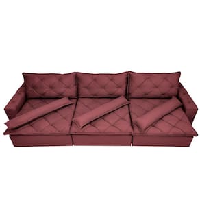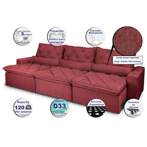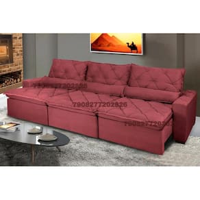 Sofá Lisboa 3,52m Retrátil, Reclinável com Molas no Assento e Almofadas Lombar Tecido Suede - Vinho