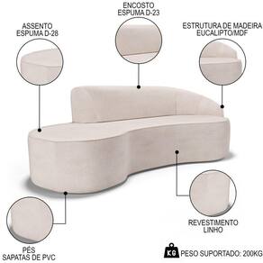 Sofá Living 2 Lugares 180cm Braço Direito Mozart D06 Linho Cru - Mpozenato